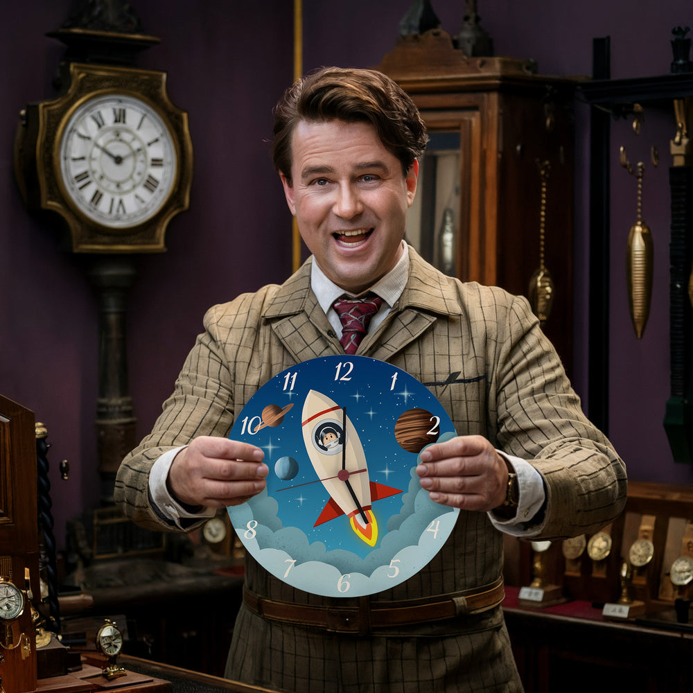 - 1x Rakete im Weltall Wanduhr für Kinder in der gewählten Variante
