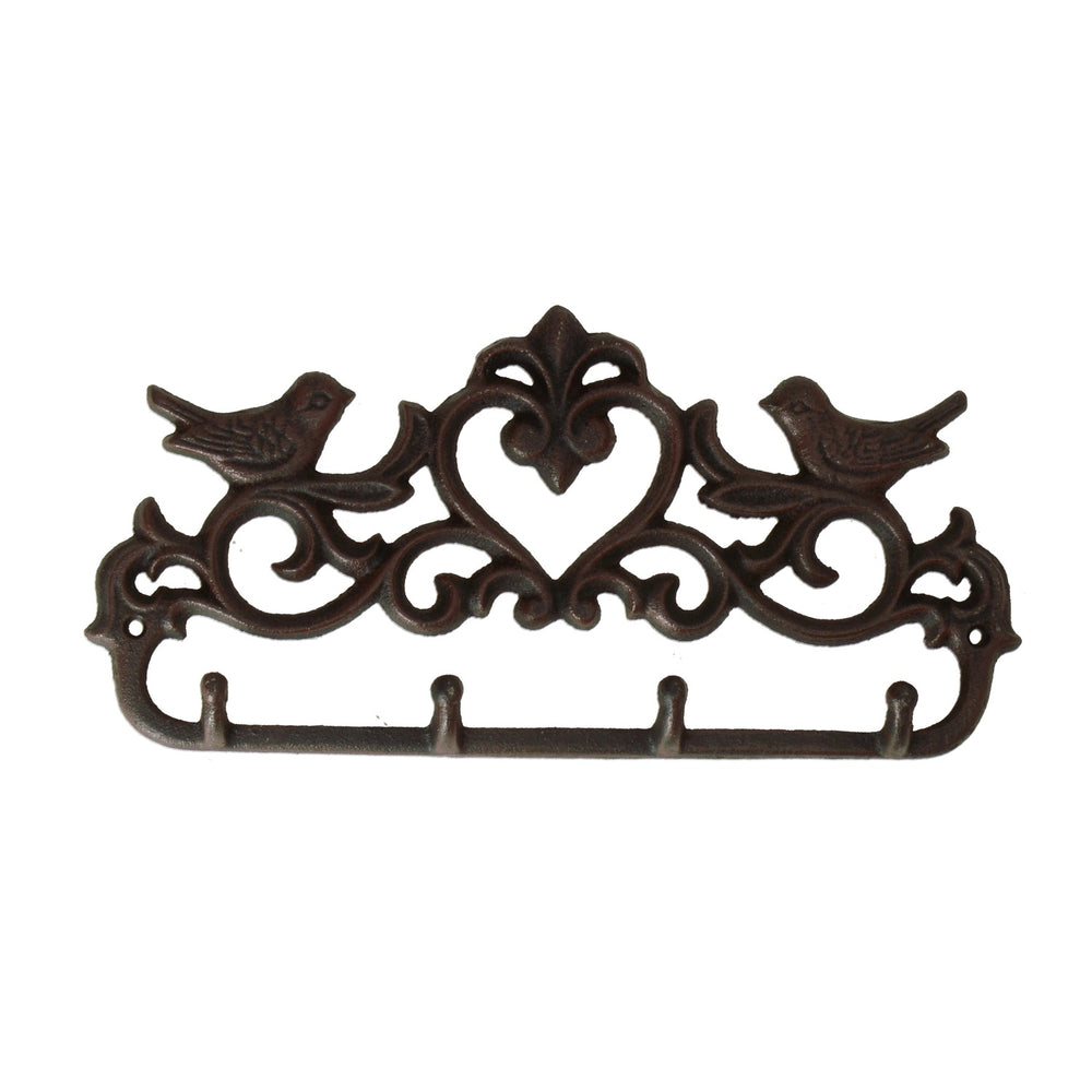 Der Vogelpaar Kleiderhaken ist ein unverzichtbares Accessoire für jeden Haushalt. Er ist aus massivem Gusseisen hergestellt, wodurch er sehr robust ist und lange hält. Mit seinen kleinen Vögeln, die sich zur Mitte hinwenden, ist er ein wunderschöner Blickfang an der Wand. Er bietet Ihnen vier Haken um Jacken, Mäntel oder Hüte aufzuhängen. Der Kleiderhaken hat die Maße ca. 31cm x 14,5cm x 3cm und lässt sich einfach an der Wand befestigen (Befestigungsmaterial nicht im Lieferumfang enthalten). Mit dem Vogelpaar Kleiderhaken holen Sie sich nicht nur eine praktische Aufbewahrungslösung in Ihr Zuhause, sondern auch ein schönes Dekorationselement.
