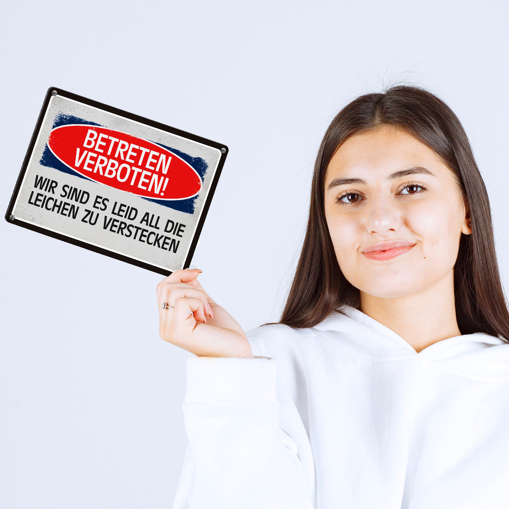 • 1x Wir sind es Leid die Leichen zu verstecken Metallschild in der gewählten Größe