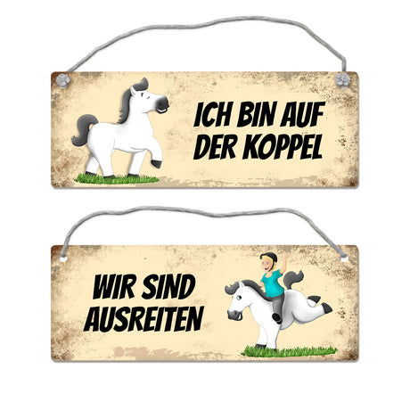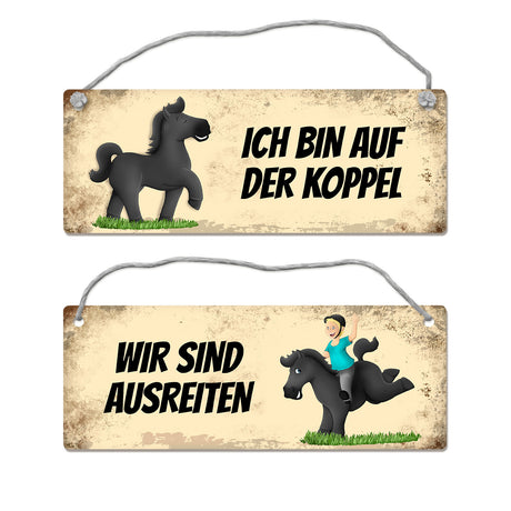 - Braunes Pferd ist auf der Koppel oder ausreiten Wendeschild mit Kordel €9,95Grundpreis /Nicht verfügbarAuf Lager