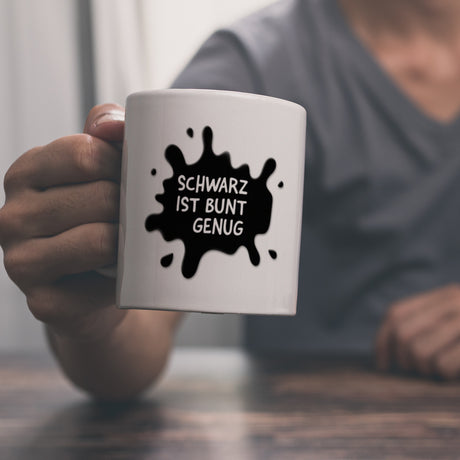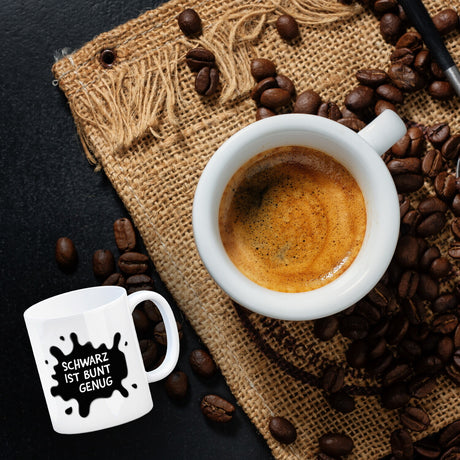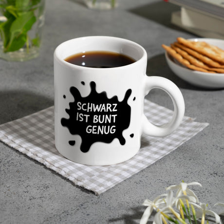 - Schwarz ist bunt genug Kaffeebecher mit Farbklecks Motiv €12,95Grundpreis /Nicht verfügbarAuf Lager