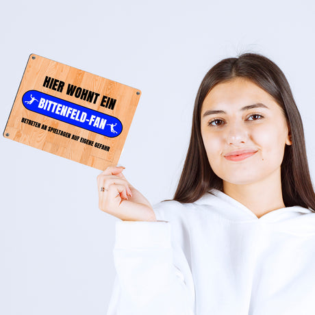 - Hier wohnt ein Bittenfeld-Fan Metallschild in 15x20 cm mit Turnhallenboden Motiv Ab €8,95Grundpreis /Nicht verfügbarAuf Lager
