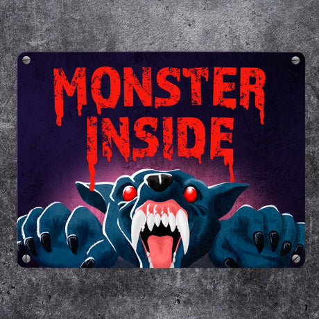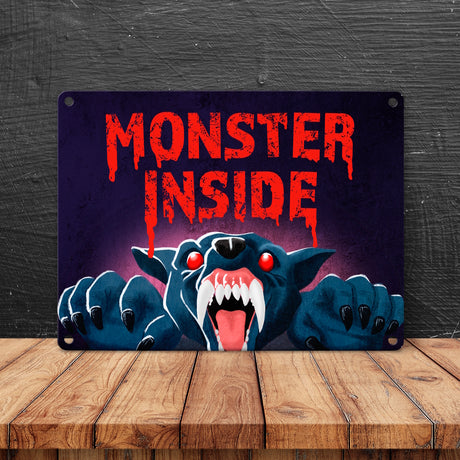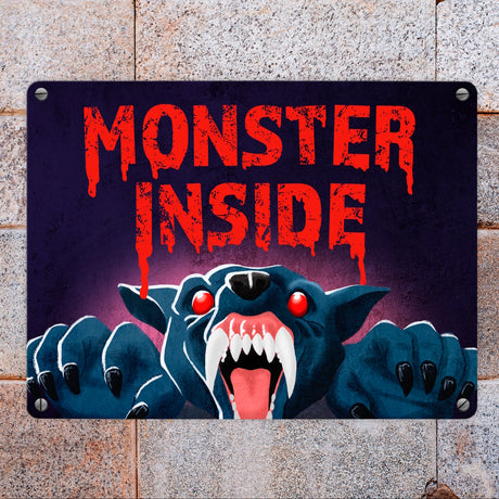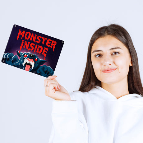 Ab €12,95Grundpreis /Nicht verfügbarAuf LagerMonster Inside Halloween Metallschild in 15x20 cm mit gruseligem Werwolf Motiv
