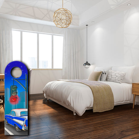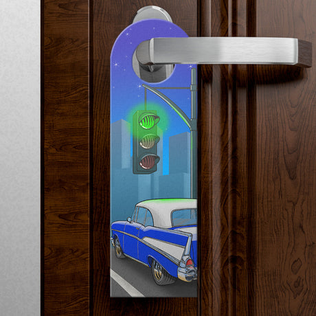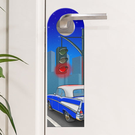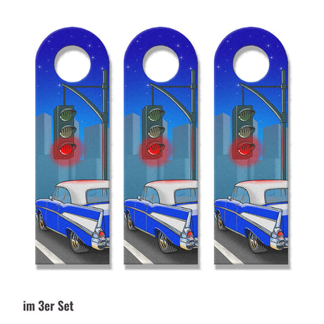 Ab €6,95Grundpreis /Nicht verfügbarAuf LagerTürhänger rote und grüne Ampel mit blauem Retro US-Car und Skyline