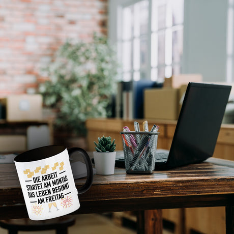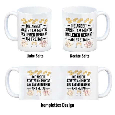 €8,95Grundpreis /Nicht verfügbarAuf LagerArbeit am Montag - Leben beginnt Freitag Kaffeebecher