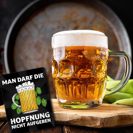 €8,95Grundpreis /Nicht verfügbarAuf LagerMan darf die Hopfnung nicht aufgeben Metallschild mit Bierkrug
