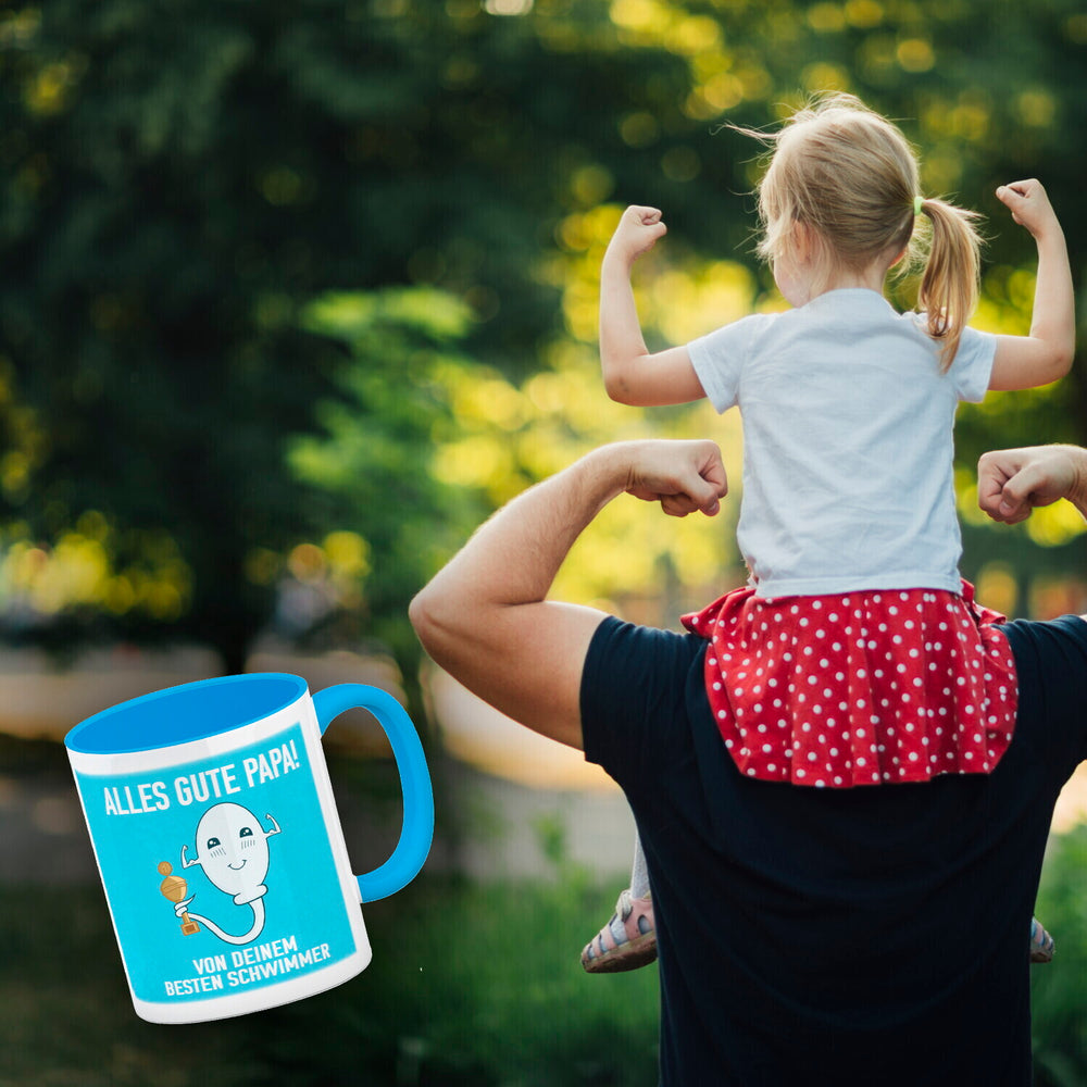 - 1x Alles gute Papa von {deinem besten Schwimmer} Kaffeebecher zum Vatertag in der gewählten Ausführung