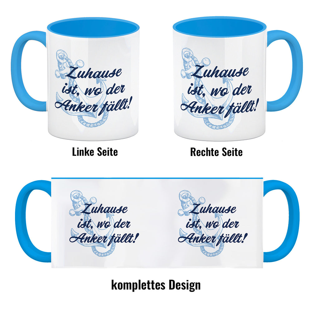 - 1x Anker Kaffeebecher mit Spruch Zuhause ist, wo der Anker fällt in der gewählten Ausführung