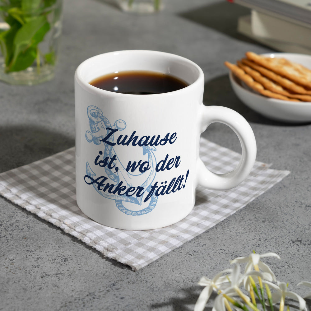 Anker Kaffeebecher mit Spruch Zuhause ist, wo der Anker fällt