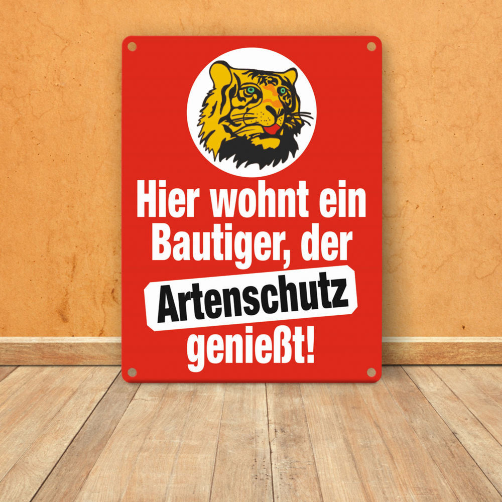 - 1x Bautiger genießt Artenschutz Metallschild in der gewählten Größe