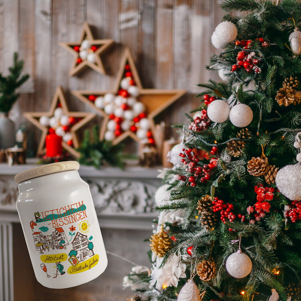 - Sichern Sie sich jetzt diese handliche Keksdose! Mit Liebe zum Detail designed und von höchster Qualität – eine praktische und kunstvolle Ergänzung für Ihr Zuhause. Warten Sie nicht länger, bringen Sie die Sonne der Stadt Bietigheim-Bissingen in Ihre Küche!