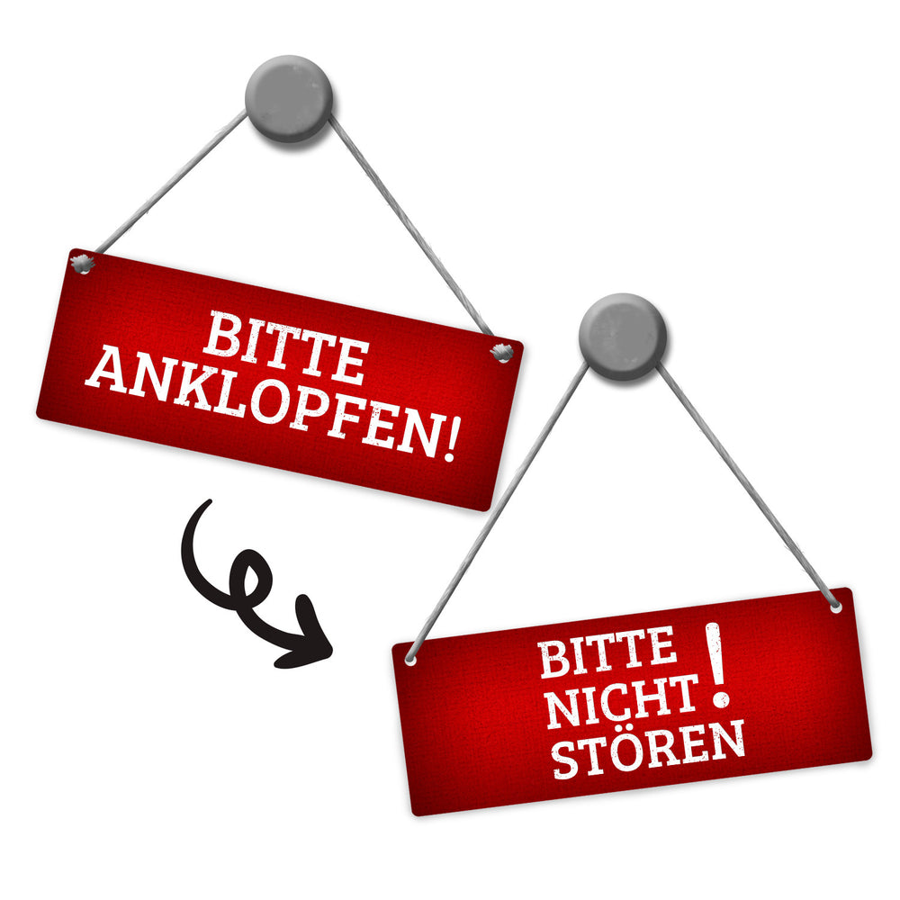 - Lieferumfang: 1x Rotes "Bitte nicht stören - Bitte anklopfen" Wendeschild mit Kordel Wendeschild