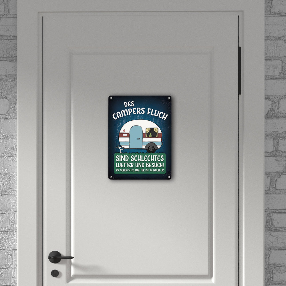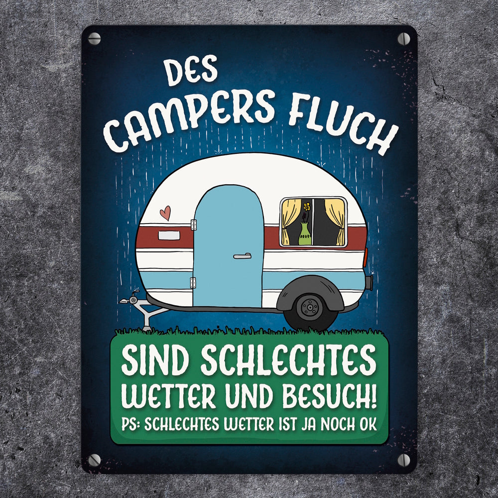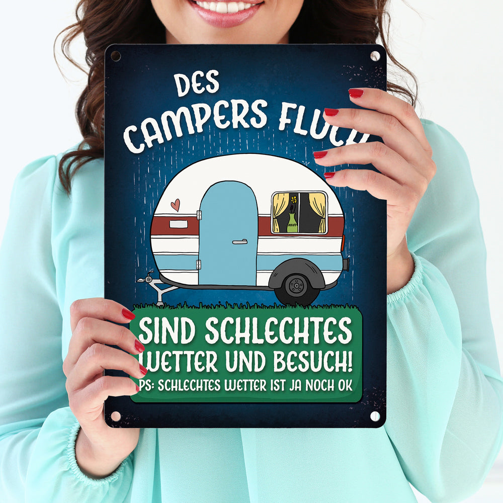 Des Campers Fluch Metallschild mit Wohnwagen Motiv
