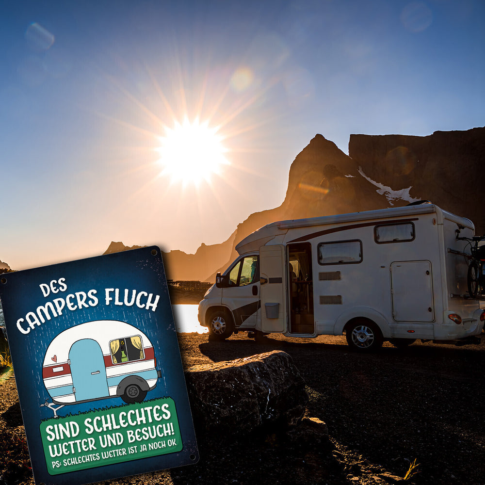 - 1x Des Campers Fluch Metallschild mit Wohnwagen Motiv in der gewählten Größe