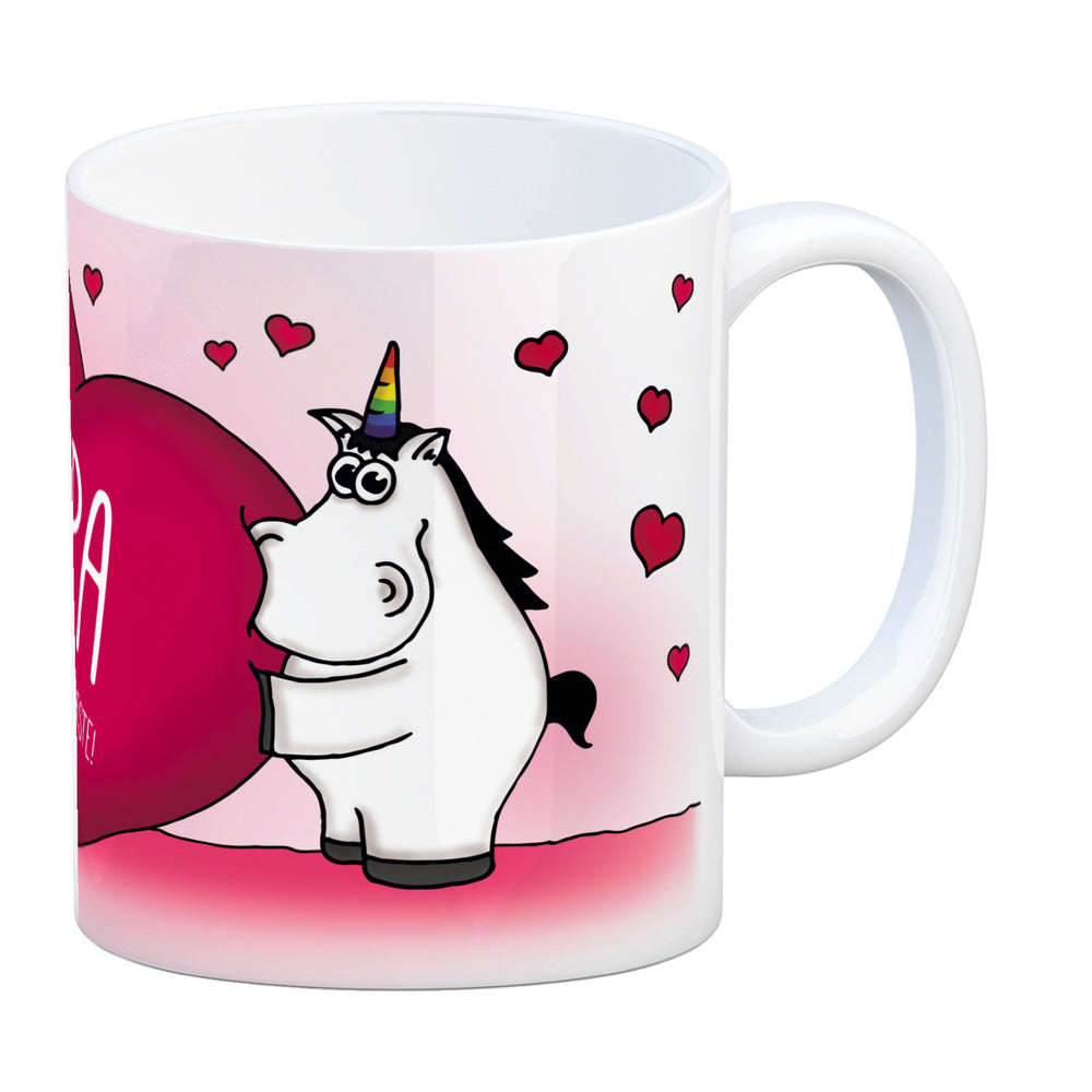 Einhorn Kaffeebecher mit Herz Motiv und Spruch: Opa ... ist der Beste!