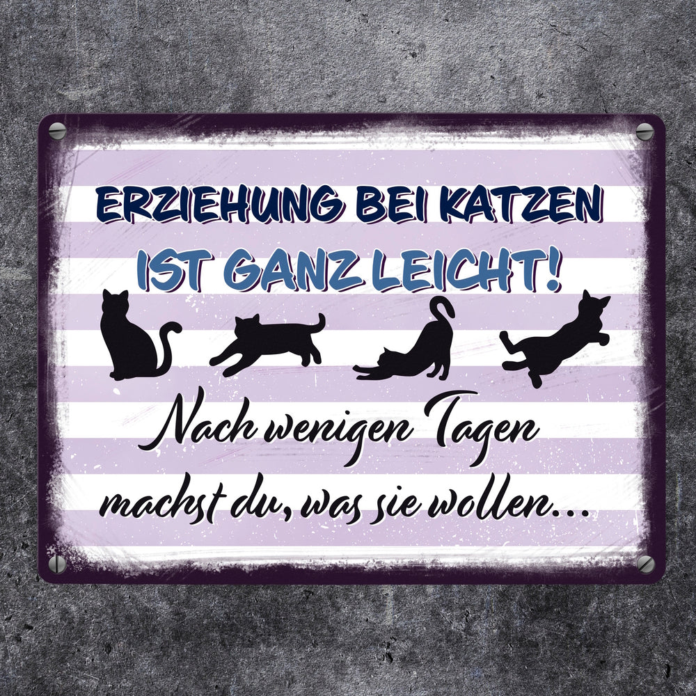 Erziehung bei Katzen ist ganz leicht… Metallschild für Katzenliebhaber