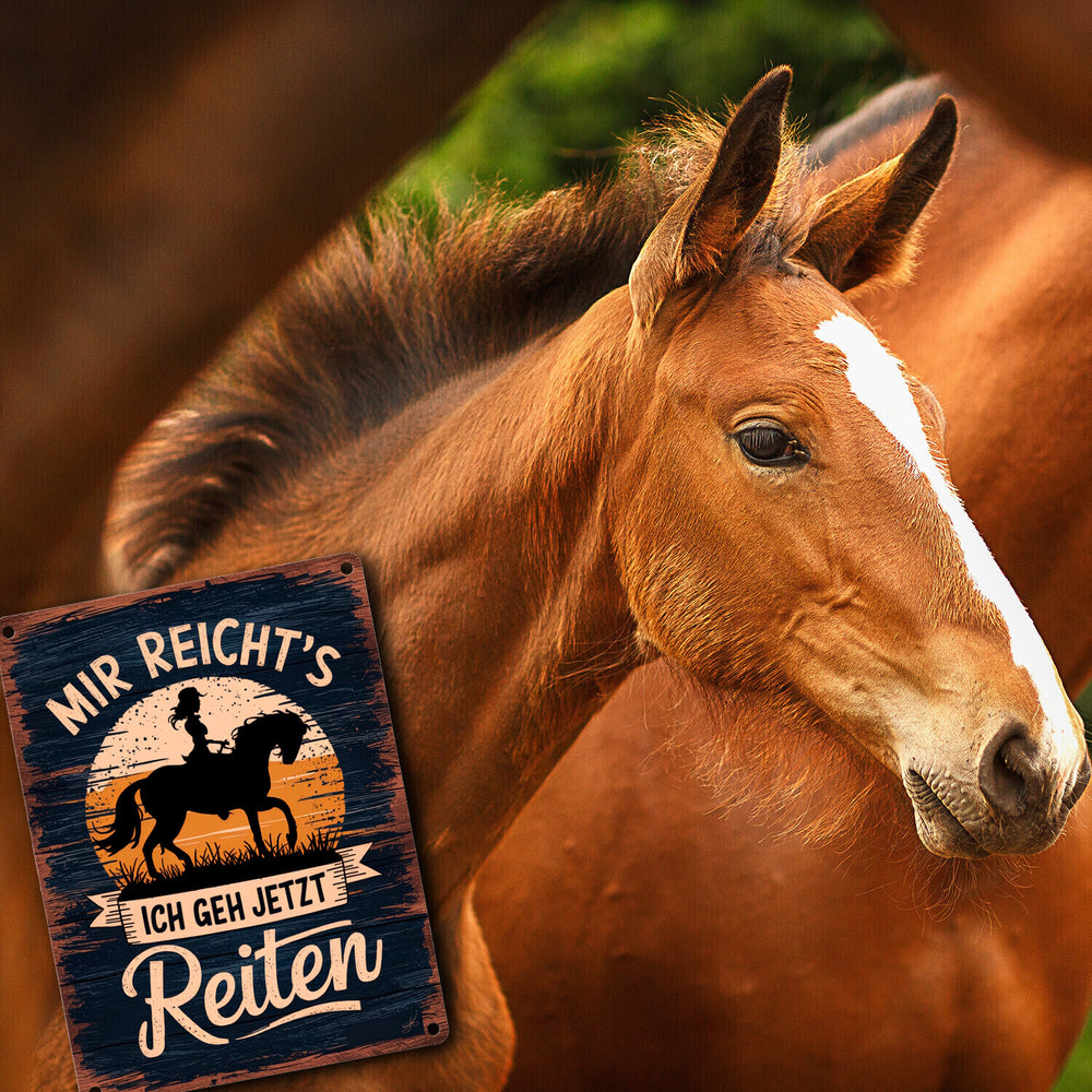 Frau auf Pferd - Mir reichts ich geh reiten Metallschild in 15x20 cm - 15x20 cm ist auf Lager und wird versandt, sobald es wieder verfügbar ist