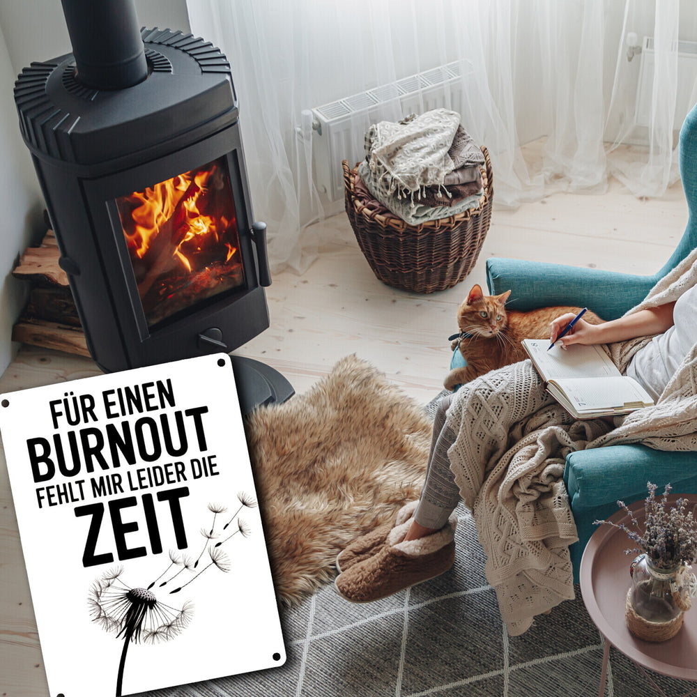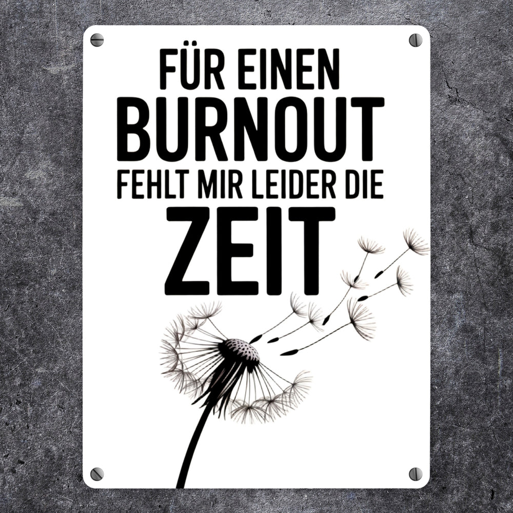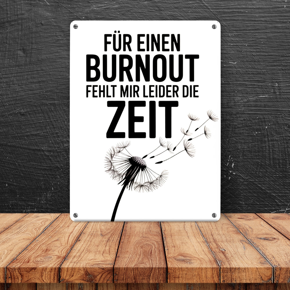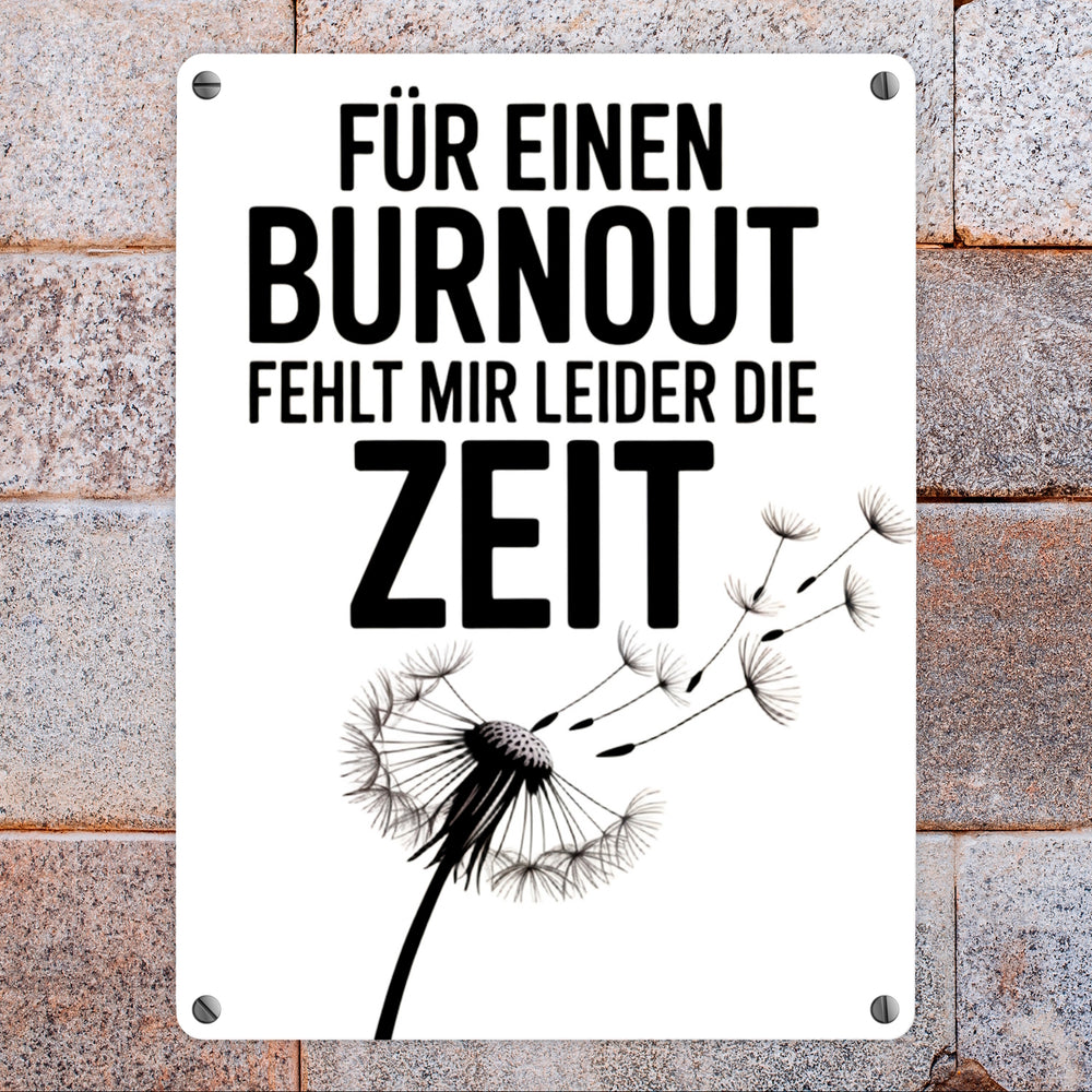 Für einen Burnout fehlt mir Zeit Löwenzahn Metallschild in 15x20 cm für Büro