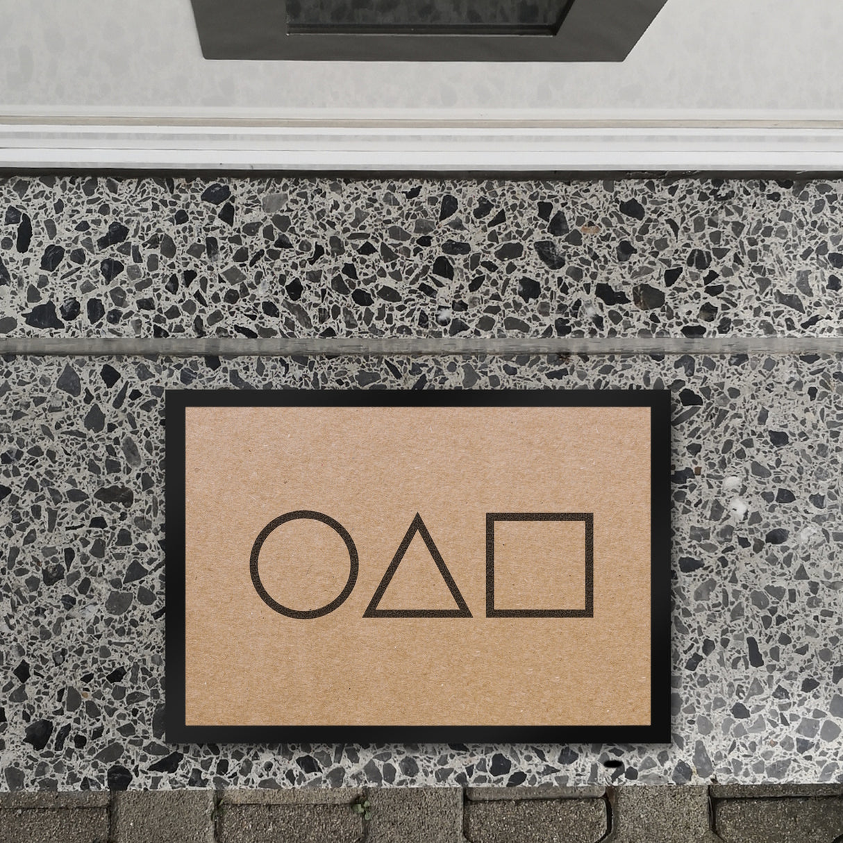 • 1x Fußmatte in 35x50 cm mit Serienmotiv Tintenfisch Kreis Dreieck Viereck Südkorea Spiel in der gewählten Größe