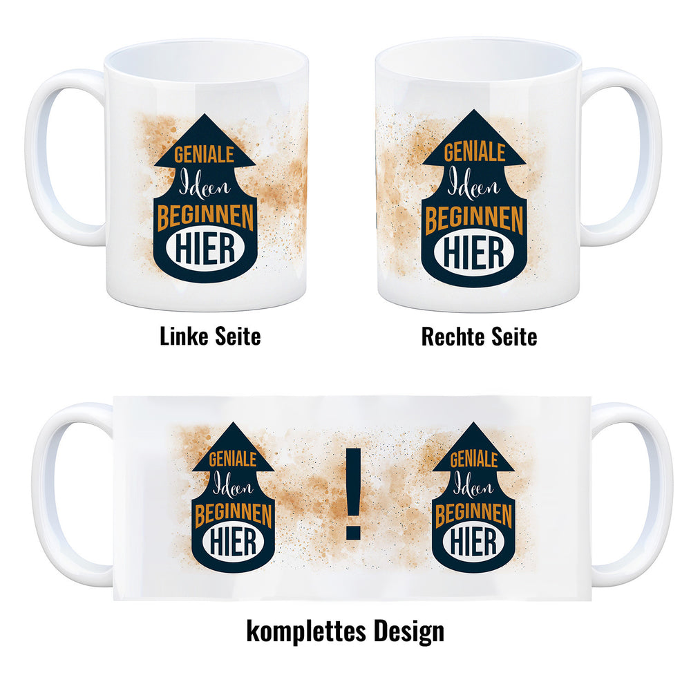- 1x Geniale Ideen beginnen hier Kaffeebecher in der gewählten Ausführung
