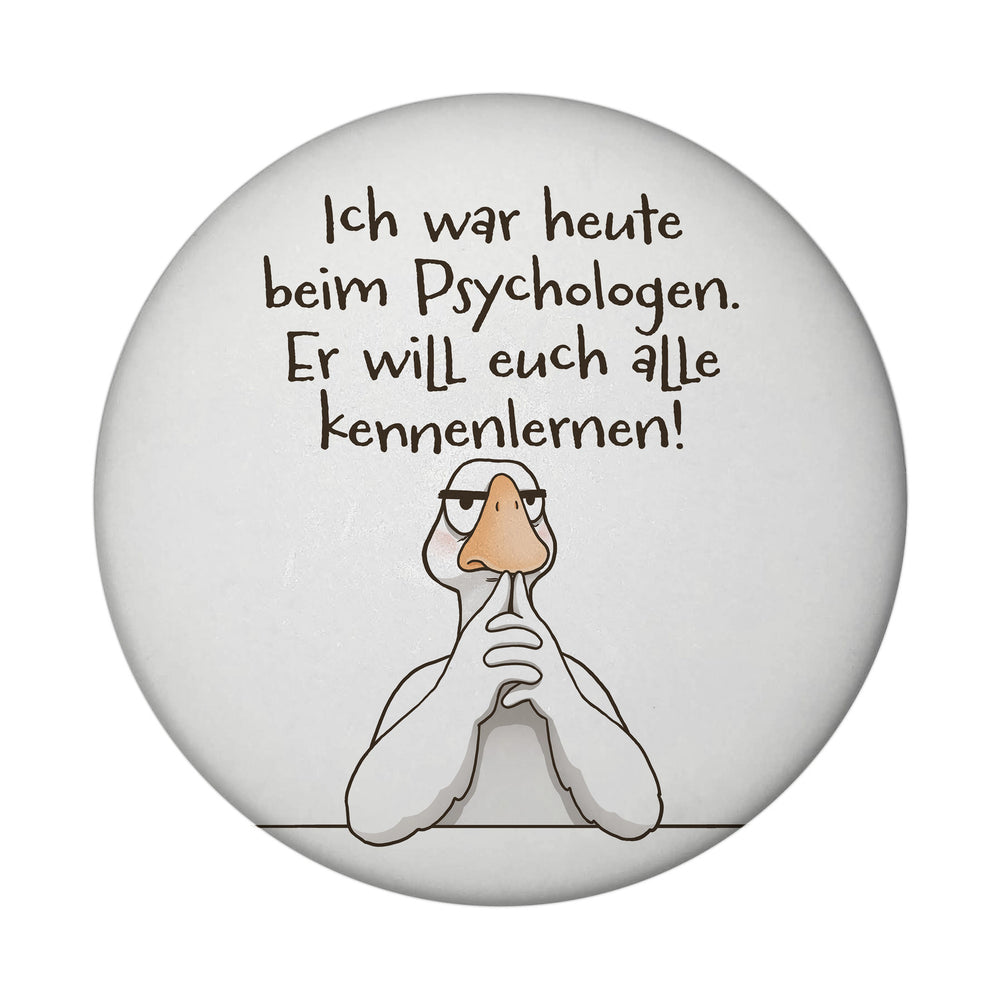 Gilbert die Gans Magnet rund mit Spruch Psychologe will euch alle kennenlernen - Standard ist auf Lager und wird versandt, sobald es wieder verfügbar ist