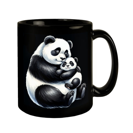 Panda Mama mit Baby Tasse schwarz in Schwarz