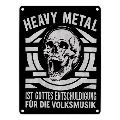 Heavy Metal statt Volksmusik Metallschild in 15x20 cm mit Totenkopf