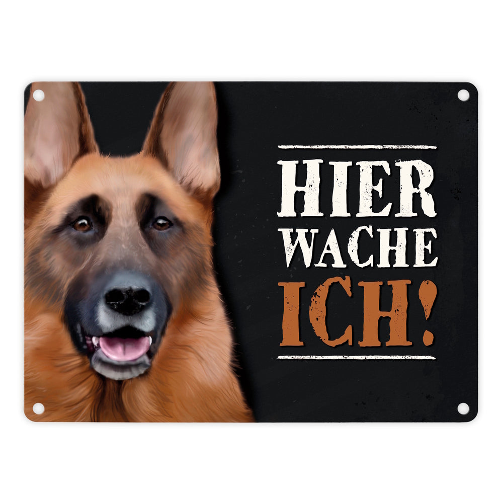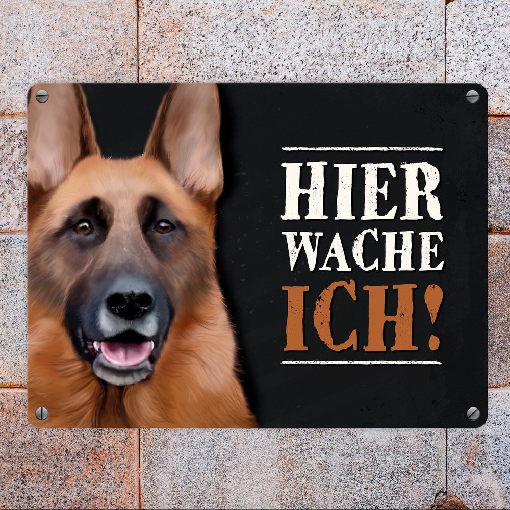 - 1x Hier wache ich! Schäferhund Metallschild in der gewählten Größe