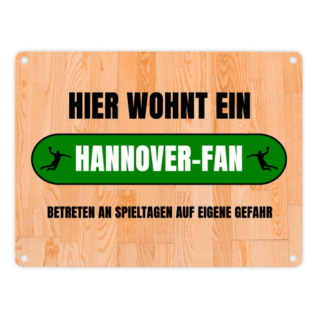 Hier wohnt ein Hannover-Fan Metallschild in 15x20 cm mit Turnhallenboden Motiv