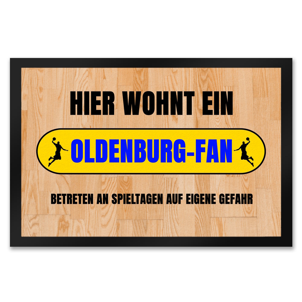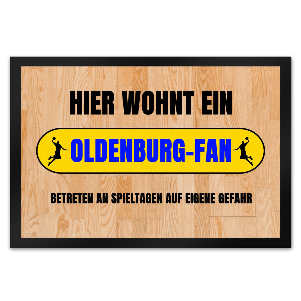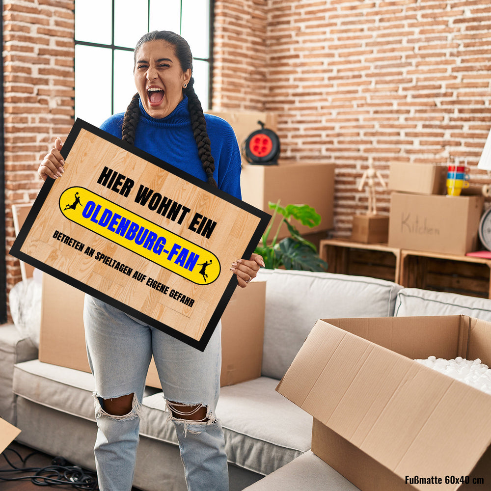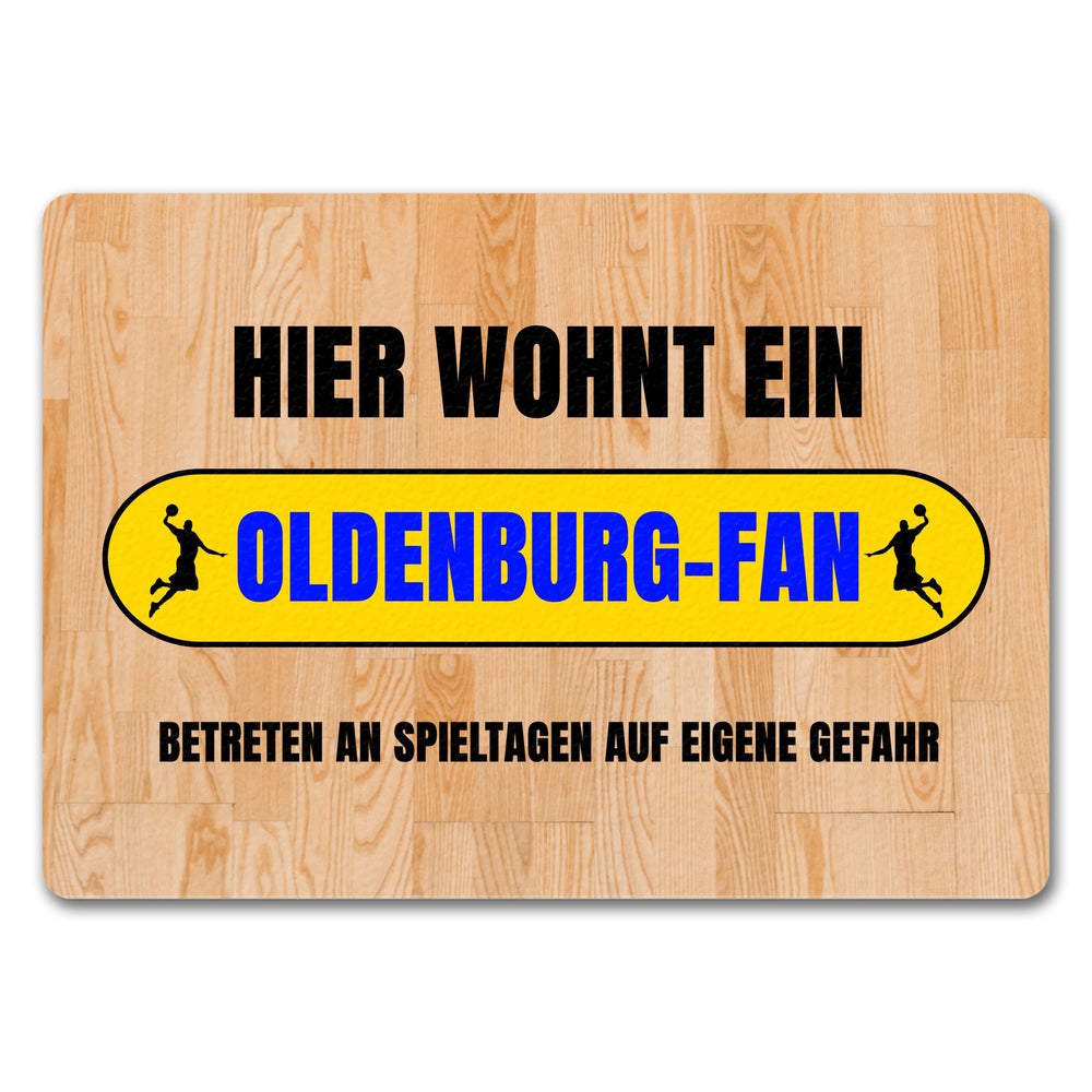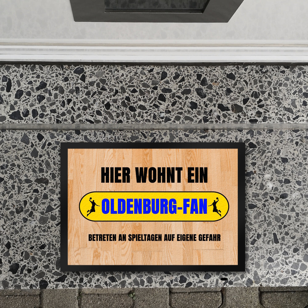Hier wohnt ein Oldenburg-Fan Fußmatte in 35x50 cm mit Turnhallenboden Motiv