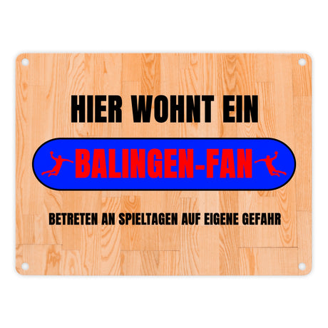 Hier wohnt ein Balingen-Fan Metallschild in 15x20 cm mit Turnhallenboden Motiv