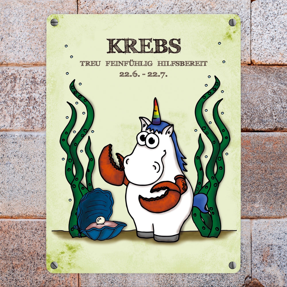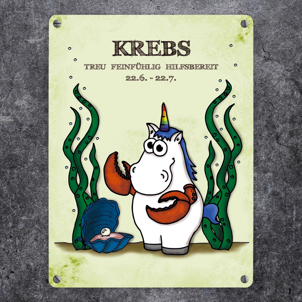 Für alle, die zwischen dem 22.06. und dem 22.07. geboren wurden, ist dieses Einhorn Metallschild perfekt geeignet. Hinweise: Material: Aluminium / Dicke: 0,5 mm