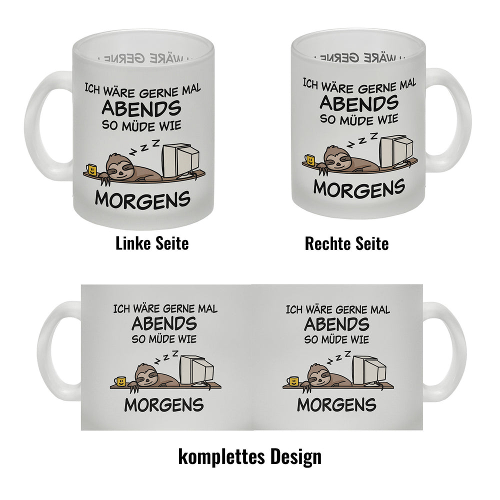 - 1x Ich wäre gerne abends so müde wie morgens Faultier Kaffeebecher in der gewählten Ausführung