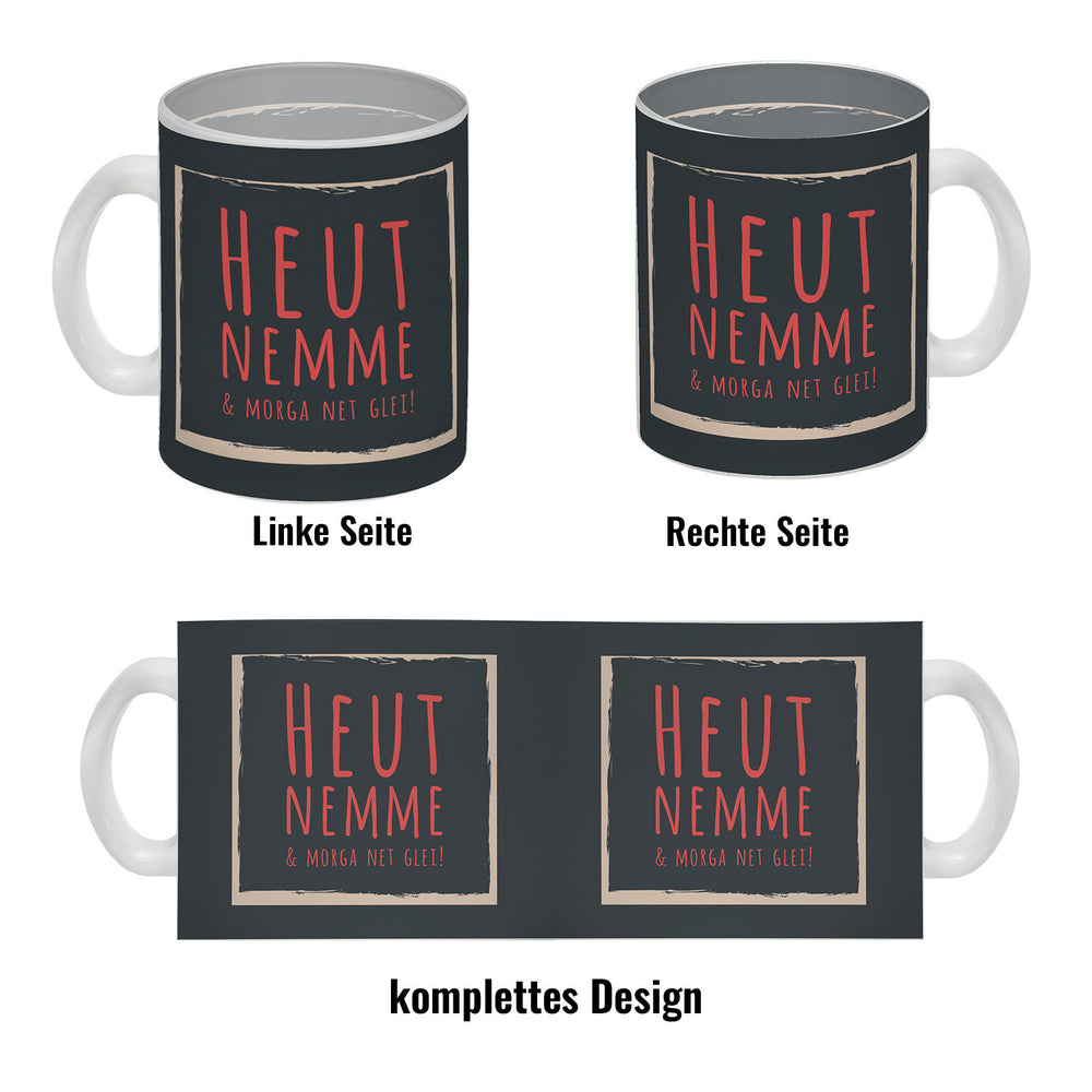 - 1x Kaffeebecher mit Spruch: Heut nemme & morga net glei! Schwäbisch Schwaben Dialekt Mundart in der gewählten Ausführung