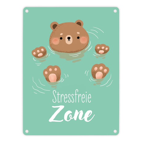 Bär im Wasser Metallschild in 15x20 cm mit Spruch Stressfreie Zone