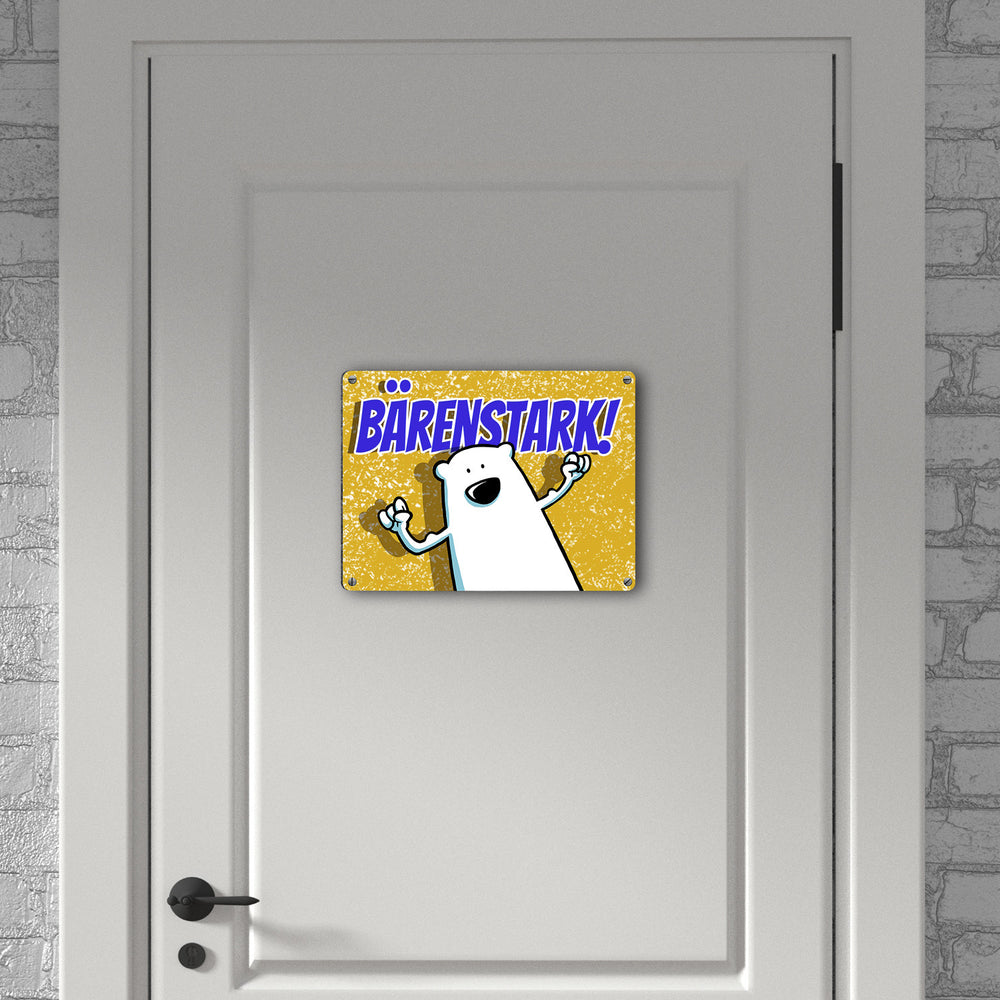 Metallschild mit Bärenmotiv: Bärenstark Schild mit lustigem Comic Bär