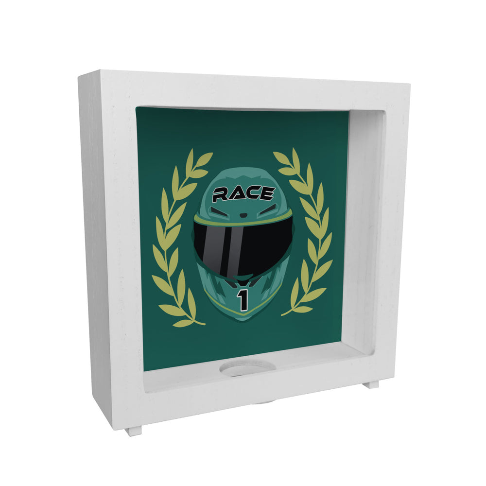 - 1x Motorsport-Helm Spardose mit Siegerkranz in der gewählten Ausführung