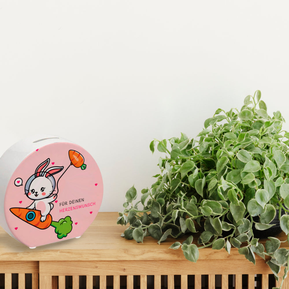 Niedliche Spardose mit Häschen Motiv - Für meinen Herzenswunsch