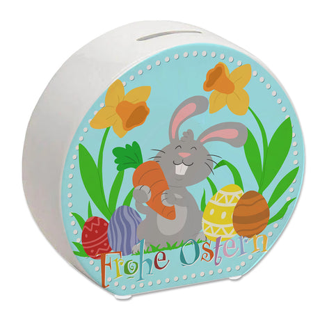 Frohe Ostern Spardose mit niedlichem Osterhasen und Ostereiern