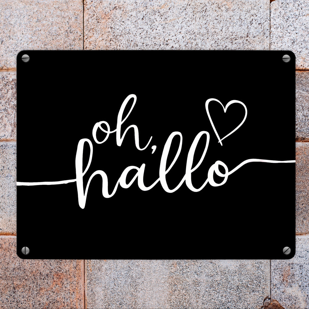 Oh Hallo Metallschild in 15x20 cm mit Herz in elegantem Design - 15x20 cm ist auf Lager und wird versandt, sobald es wieder verfügbar ist
