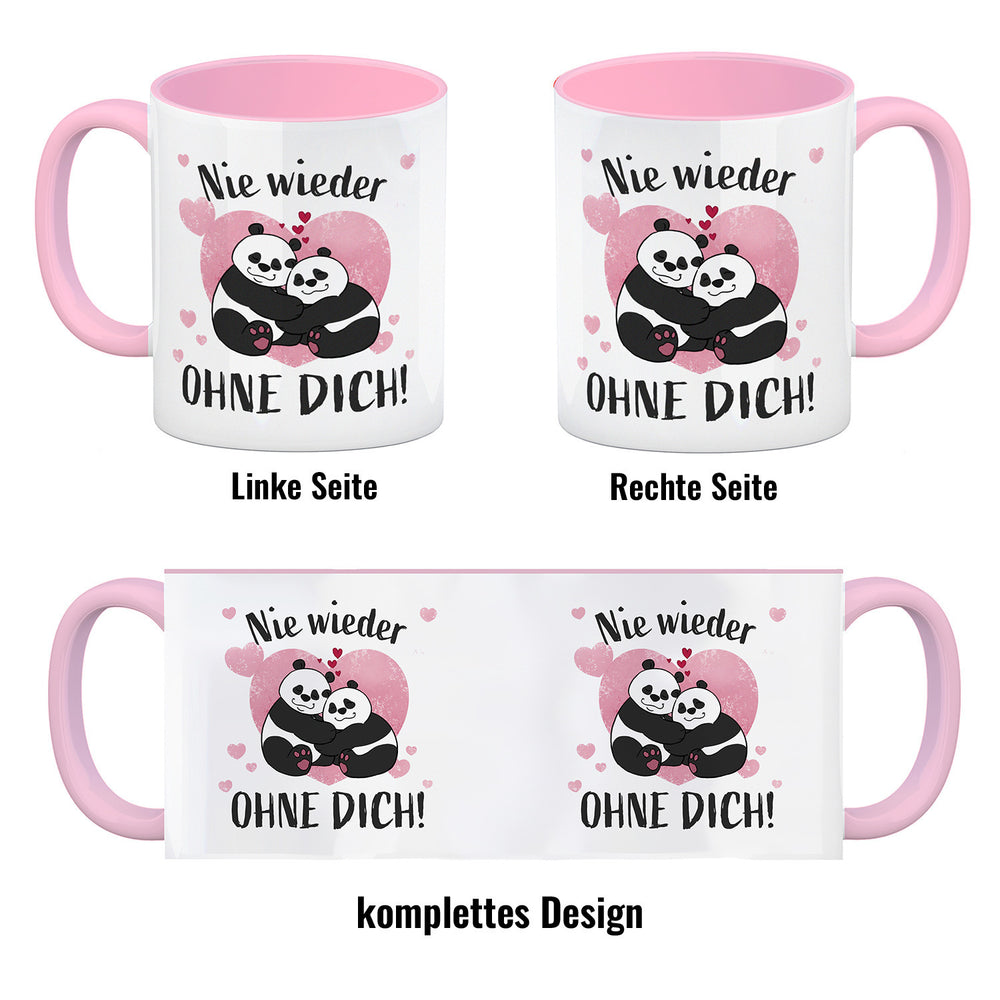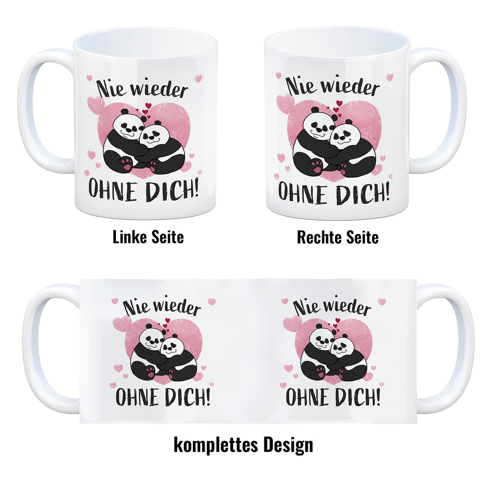 Panda Pärchen Kaffeebecher mit Spruch Nie wieder ohne dich