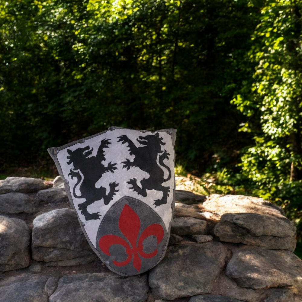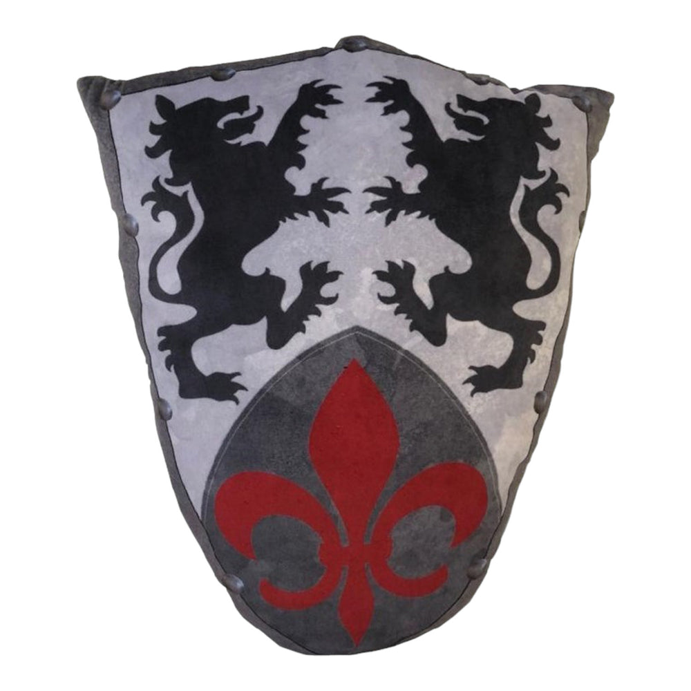 - Unser Kissen sieht aus wie ein echtes Ritterschild! Vorne prangen zwei majestätische Löwen und eine heraldische Lilie. Auf der Rückseite sorgen zwei Handgriffe für einen starken Halt. Hol dir dein Schutzschild!