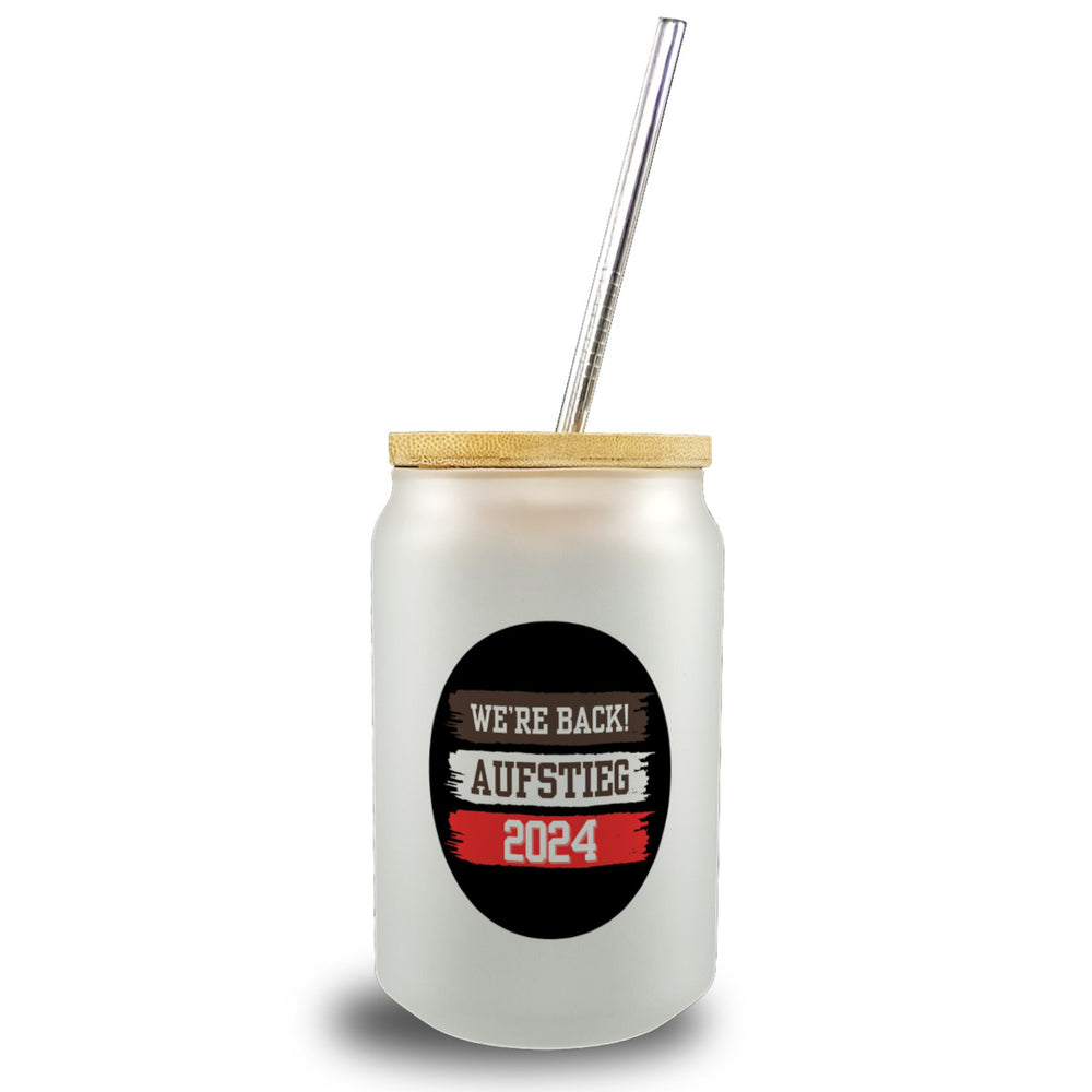 St. Pauli Aufstieg 2024 Trinkglas mit Bambusdeckel mit Spruch We're back