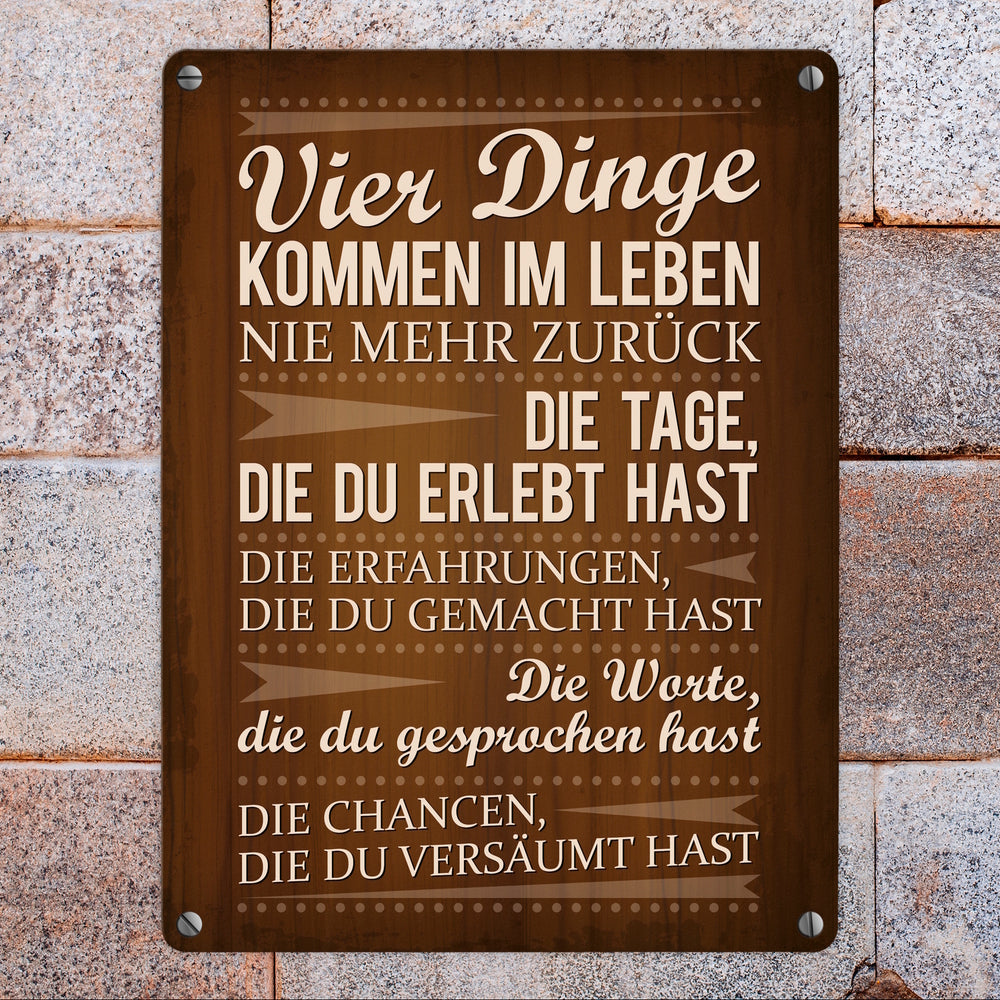 Vier Dinge kommen im Leben nie mehr zurück Metallschild