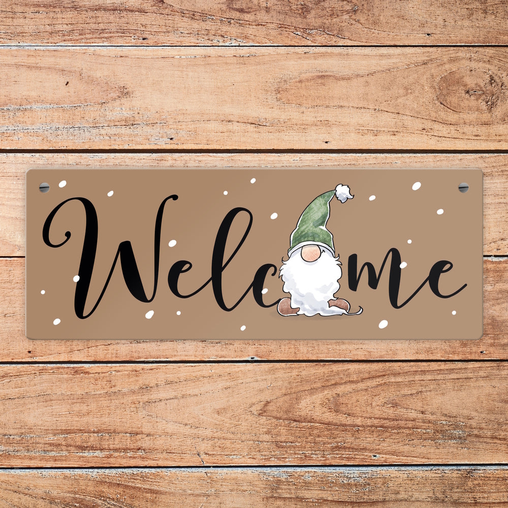 - 1x Welcome Metallschild mit bärtigem Wichtel in der gewählten Größe