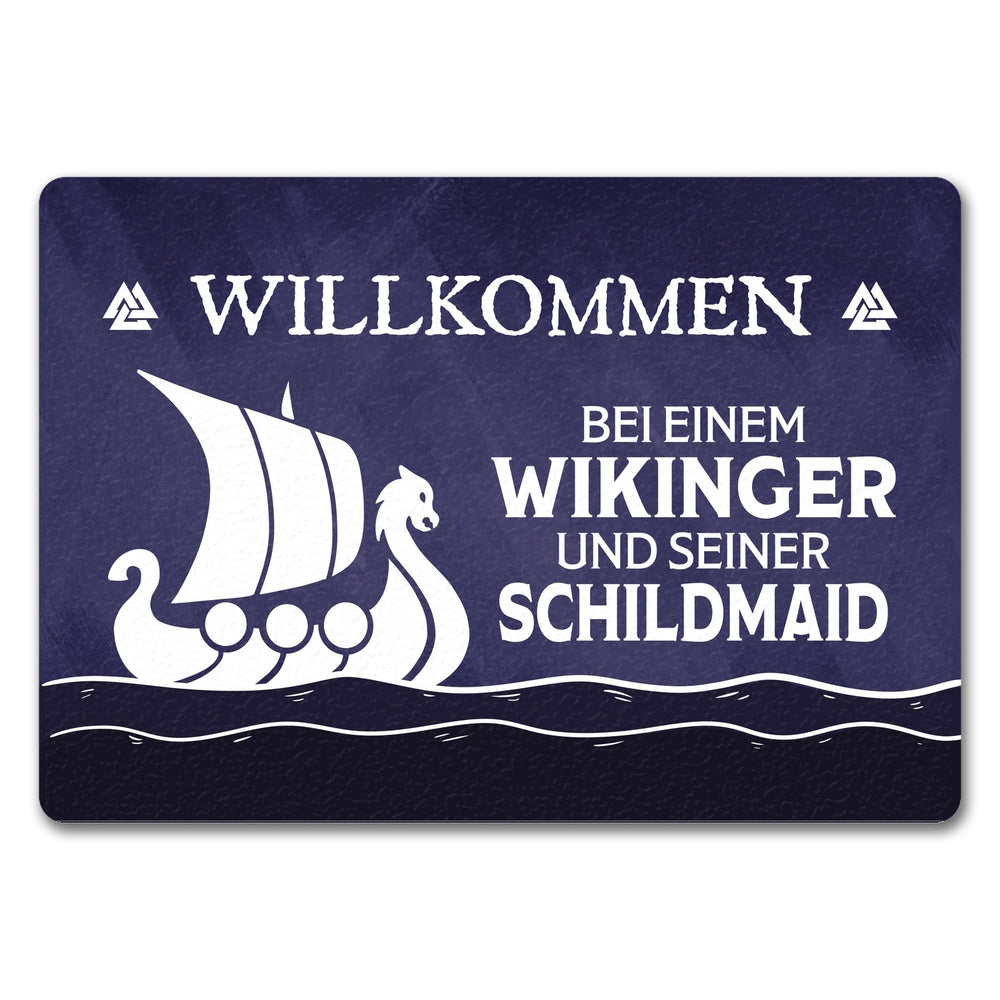 - 1x Willkommen bei einem Wikinger und seiner Schildmaid Fußmatte mit Segelboot Motiv in der gewählten Größe
