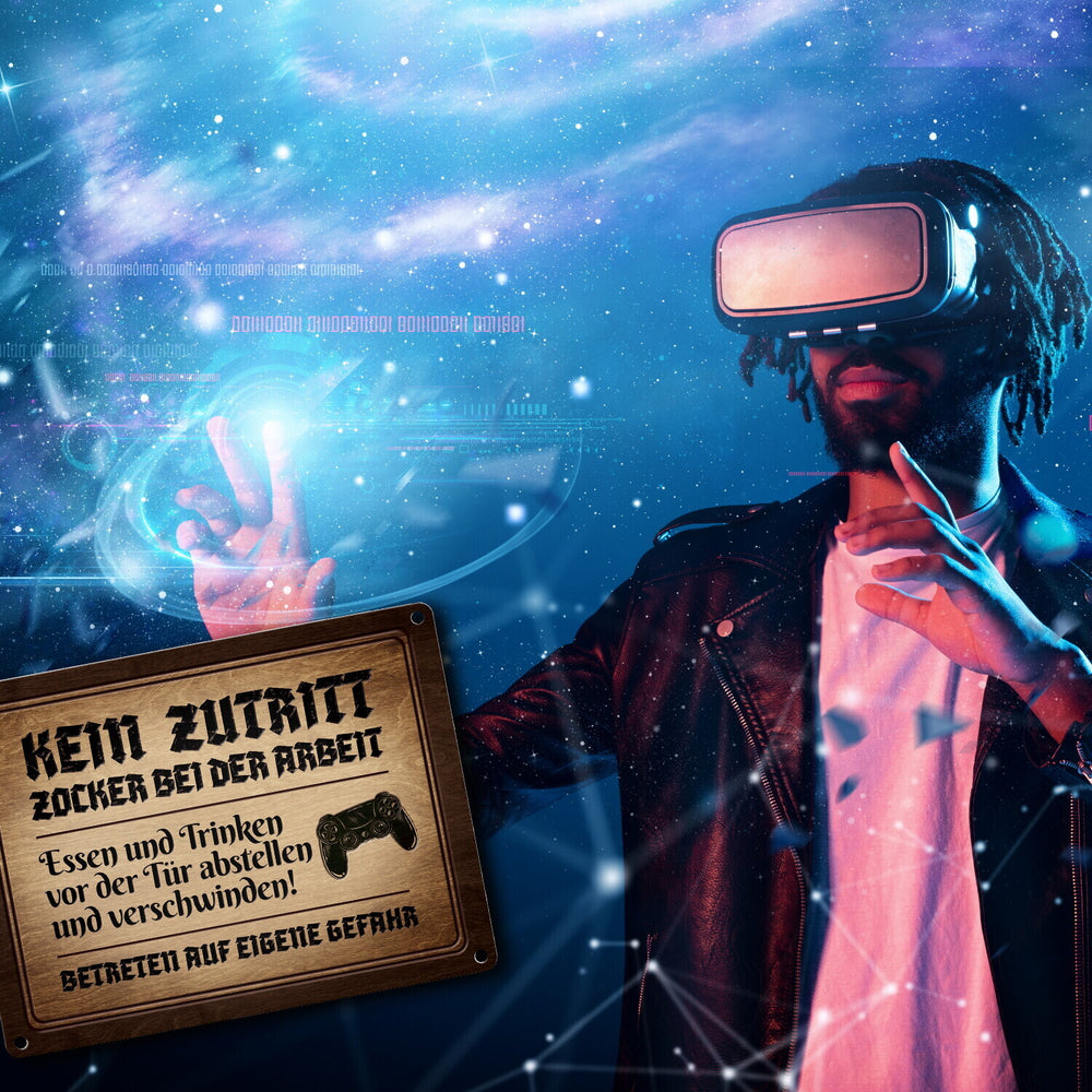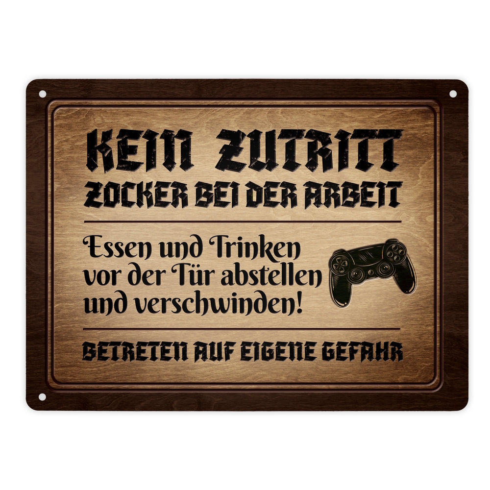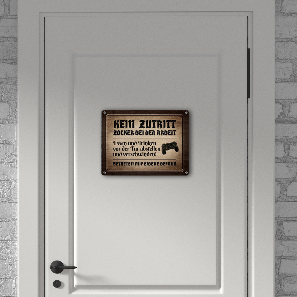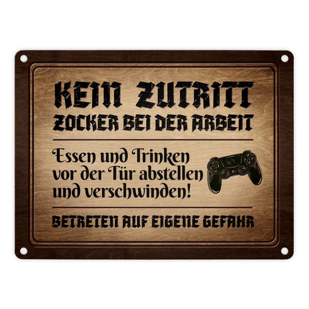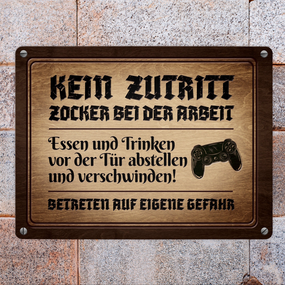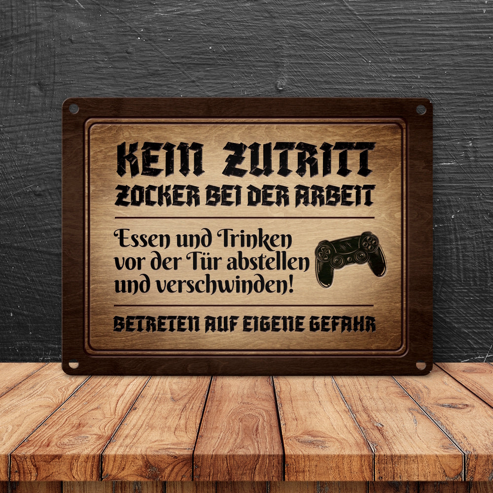 - 1x Zocker bei der Arbeit Metallschild mit Controller Motiv in der gewählten Größe