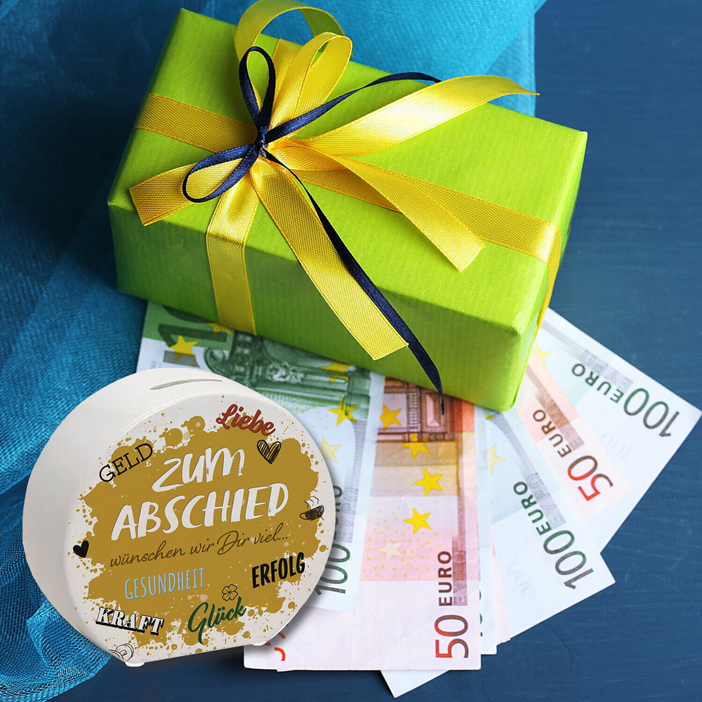 - 1x Zum Abschied Wünsche Spardose in der gewählten Ausführung