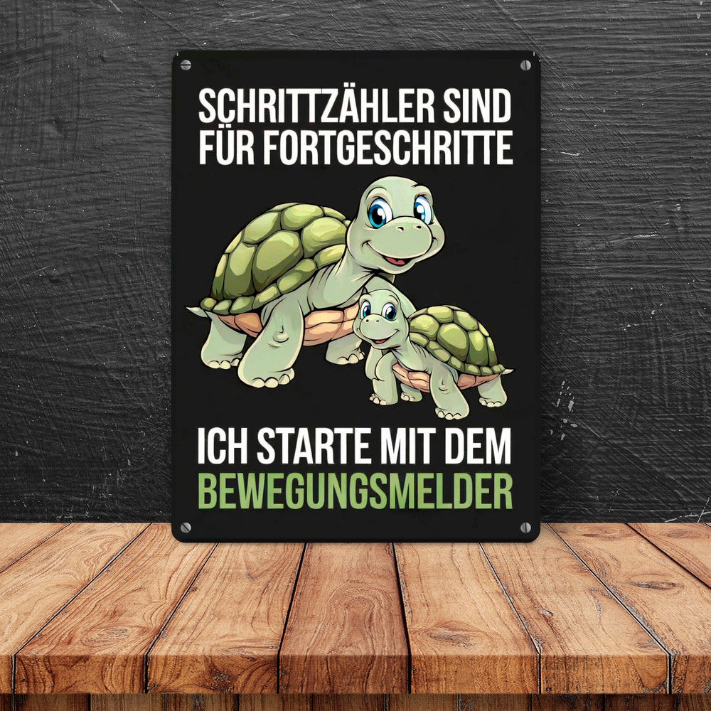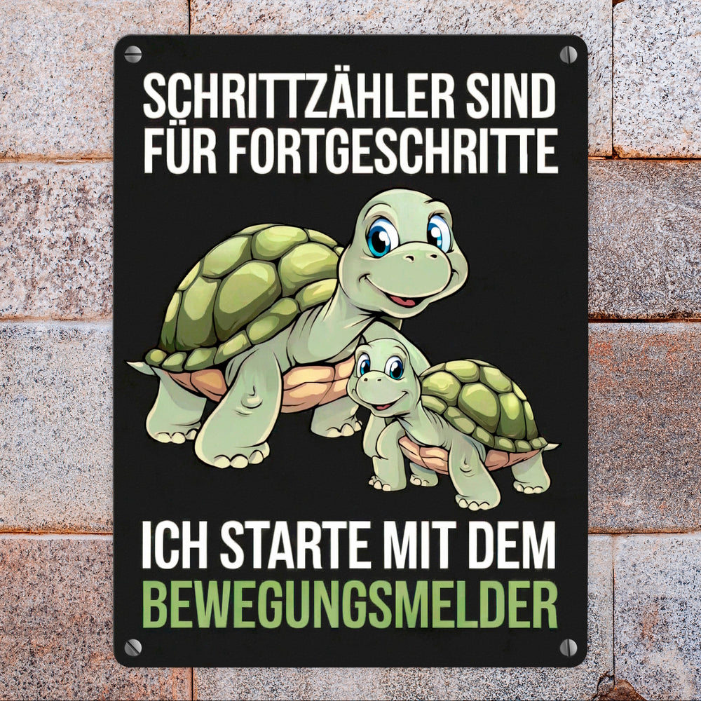 - Ob als lustige Wanddekoration oder schräges Geschenk, dieses Metallschild zaubert direkt gute Laune. Die Botschaft? Schrittzähler sind was für Profis; wir setzen auf Bewegungssensoren!