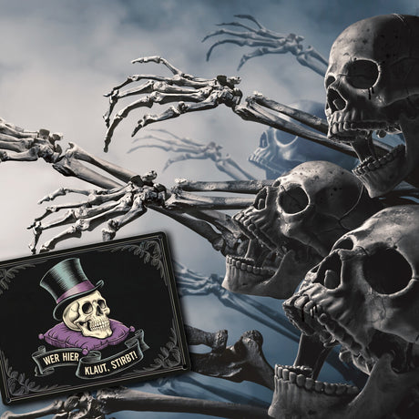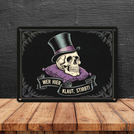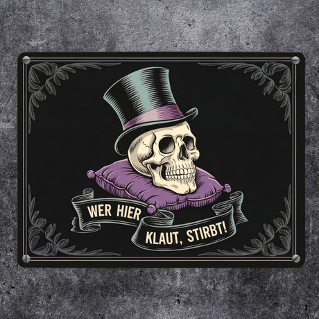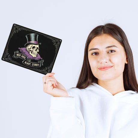 - Totenkopf mit Zylinder - Wer hier klaut stirbt Metallschild in 15x20 cm Ab €8,95Grundpreis /Nicht verfügbarAuf Lager